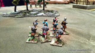I would like to play these in my next match, mostly as a test of their balance in the game. AS SAGA as advanced, some of the new units have moved to the extremes in terms of bonuses and drawbacks. Correctly deploying them is more tricky than the shield wall and charge combat of early SAGA. I probably will put them into as large a unit as possible, not a 6 person squad shown above, given their propensity for friendly casualties.